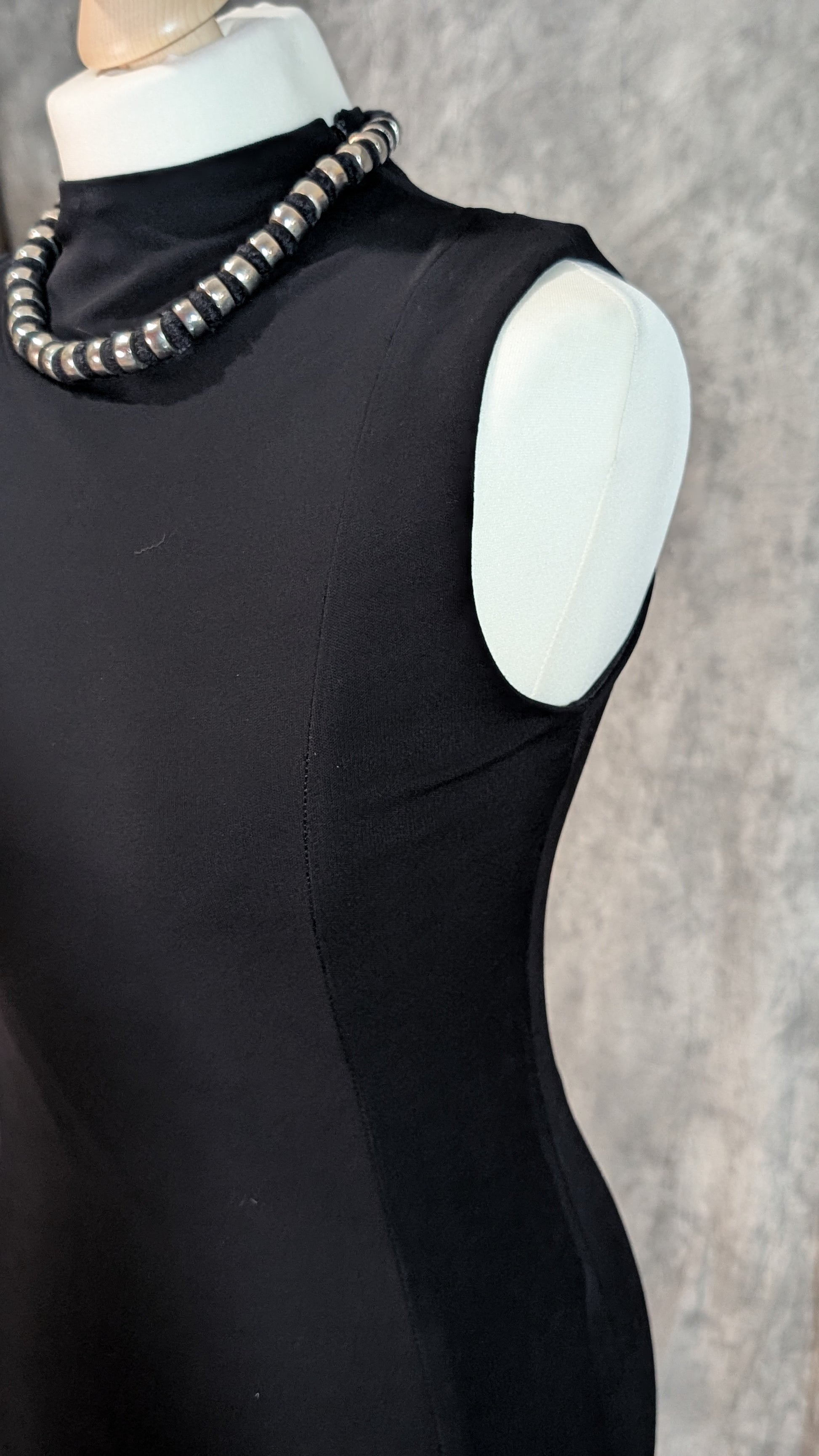 素材の美しさを最大限に引き出す、抑制されたミニマルなデザイン。ハイネック(モックネック)から流れるように続くボディラインは、まるで熟練の彫刻家による作品のようです。