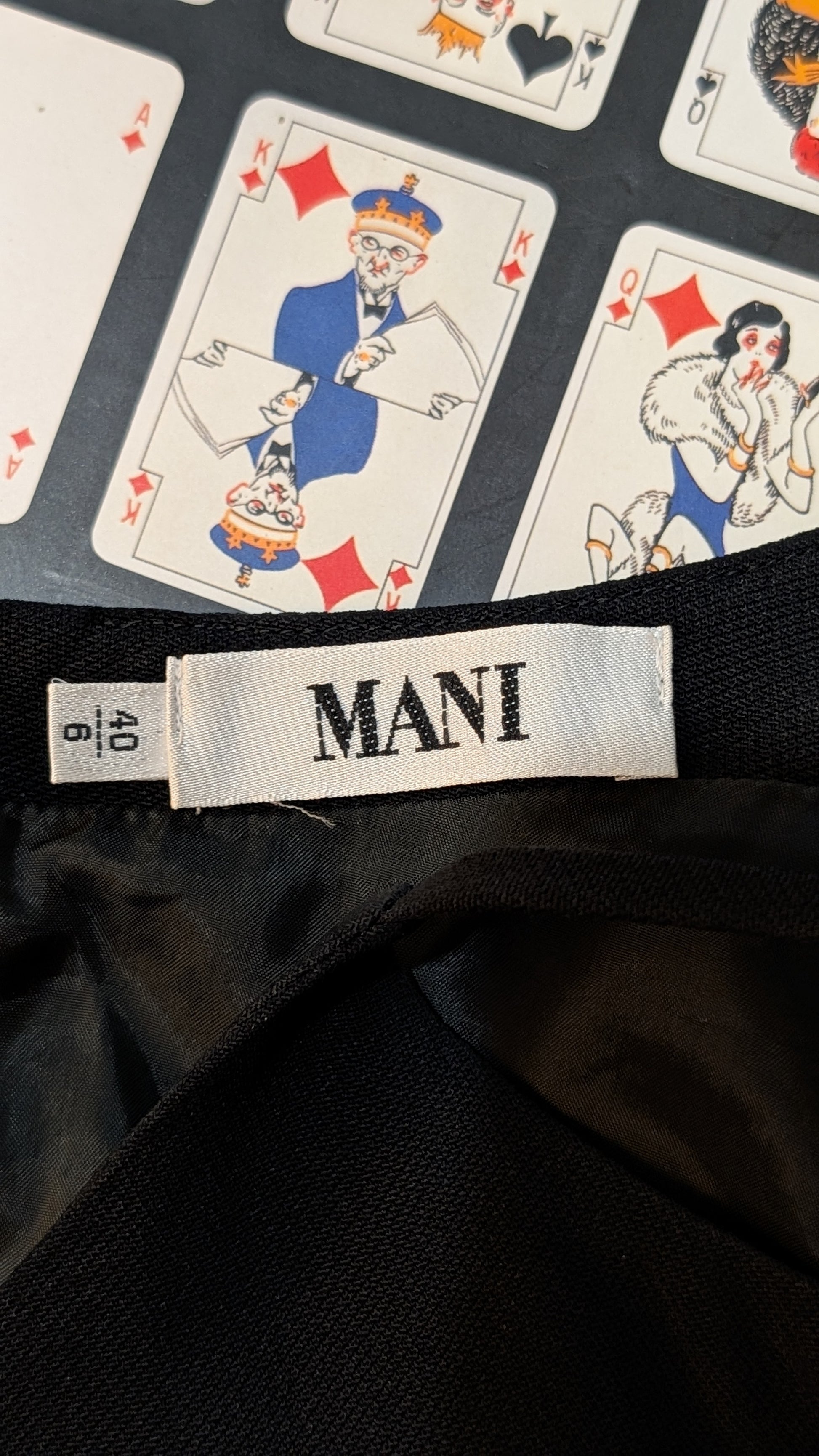 「MANI」は Giorgio Armani の最初期のディフュージョンライン。洗練されたミニマルな美学が光る一着で、シルエットはシンプルながらも上品さを兼ね備えています。90年代アルマーニの雰囲気をリアルに味わえる希少なドレス。